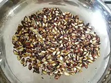 Семена характеризуются сильным экзогенным и глубоким физиологическим покоем. Прорастанию семян бука препятствует физиологический механизм торможения, даже после освобождения от оболочки они приобретают способность прорастать только после достаточно длительной стратификации при температуре 1—5 °C (оптимум 3 °C) в течение 3—5 месяцев. Однако и при стратификации прорастание семян очень растянуто. Прорастанию лишённых околоплодника семян и изолированных зародышей способствует обработка раствором гиббероловой кислоты (100 мг/л); слабее действует обработка раствором кинетина (100 мг/л) или тиомочевины (7,5 г/л)[38]. Б. Сушка и А. Клучиньская[39] рекомендуют после сбора семян высушивать их при температуре не выше 15—20 °C, хранить на холоде; стратификацию проводить так: намачивать до влажности 31 % в течение 1,5—2,5 месяцев до появления 10 % проростков, затем высевать и выдерживать при температуре 3 °C в течение 0,5—1 месяца в условиях высокой влажности субстрата, после чего проращивать при температуре 20 °C.