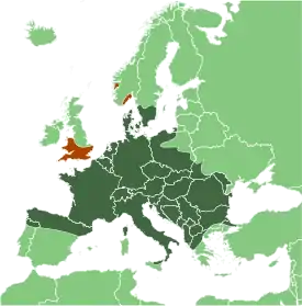 - Северную Европу: Дания (юг)[41], Норвегия (юг)[41], Швеция (юг)[41], Великобритания (Англия);