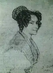 По отзыву Вигеля «она была умна; маленькая спесь, насмешливость, едва заметное кокетство, с лицом весьма приятным уже в ребячестве делали её оригинально-привлекательной; уже тогда было заметно, что она, подобно отцу своему, будет любить всё житейское… В 16 лет смелые взоры её уже искали высоких жертв, а пленительный голос её всех удивлял». Её будущий муж так писал о ней: «Старшая поёт, как Бог, что за голос, так в сердце и лезет».