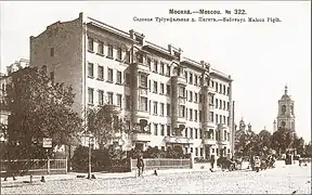 Здание построено между 1902 и 1905 как доходный дом по заказу российского миллионера Ильи Пигита, владельца табачной фабрики Дукат. Здание спроектировано в русском варианте стиля Арт Нуво. В то время строительство в Москве переживало расцвет, как раз тогда вокруг центра Москвы строилось Садовое кольцо, состоявшее из широких улиц, обсаженных деревьями. Частью его была и Большая Садовая улица. В июне 1917 г., накануне Октябрьской революции, Илья Пигит продал здание одной частной риэлторской компании. Продажа была хорошим ходом, поскольку после революции новая советская власть потребовала превратить дом в одно из первых зданий для коммунальных квартир в Москве. В 1938 г. здание утратило значительную часть своего первоначального обаяния после того, как в целях расширения улицы был убран передний забор.