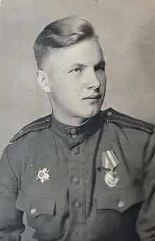 В 1941—1949 служил в РККА. Участник Великой Отечественной войны с 26.02.1944 (1-й Украинский фронт). Штурман самолета Пе-2, мл. лейтенант. Награждён орденами Красного Знамени (30.04.1945) и Отечественной войны II степени (20.05.1945)[1].