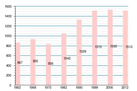 | 1962 | 1968 | 1975 | 1982 | 1990 | 1999 | 2006 | 2008 | 2011 | 2012 |