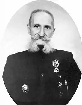![]() Евгений Григорьевич Булюбаш, со Знаком первопоходника. Фото после 1920 года | |