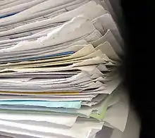 Бума́га (предположительно от итал. bombagia < лат. bombacium ‘хлопок’, первоисточником же считается иранский[1]) — волокнистый материал с минеральными добавками. Представлен в виде листов для письма, рисования, печати, упаковки и прочего, получаемый из целлюлозы: растений, а также вторсырья (тряпья и макулатуры).