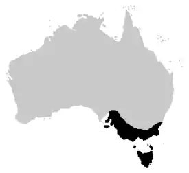 Обитает на юго-востоке Австралии, включая Тасманию. Интродуцирована в Новой Зеландии[2].