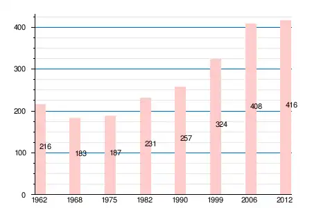 | 216 | 183 | 187 | 231 | 257 | 324 | 408 | 421 | 416 |