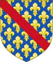 ![]() Герб Третьего дома Бурбонов: в лазуревом, усеянном золотыми лилиями щите, червлёная перевязь | |