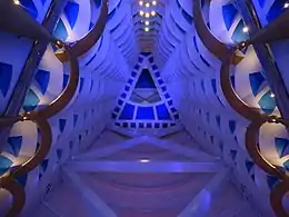 Burj Al Arab - это пятизвездочный отель, высший официальный рейтинг. Хотя отель иногда ошибочно называют «единственным в мире «семизвездочным» отелем»,[17] руководство отеля утверждает, что никогда не делало этого сами. Термин появился из-за британского журналиста, который посетил отель на экскурсии до того, как отель был официально открыт.