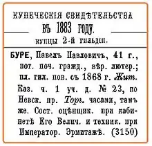 - Буре Павел Павлович, пот. поч. гражд., купец 2 гильдии (недоступная ссылка)
