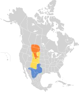 Мигрирует через Великие равнины между местами размножения в канадских прериях и на северо-западном краю Великих равнин и местами зимовки в юго-западной части США и на северо-западе Мексики.