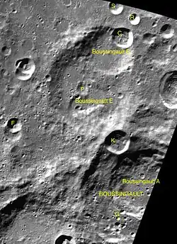 Кратер Буссенго (лат. Boussingault) — большой древний ударный кратер находящийся в гористой юго-восточной части видимой стороны Луны. Название присвоено в честь французского химика, одного из основоположников агрохимии, Жана Бати́ста Буссенго́ (1802—1887) и утверждено Международным астрономическим союзом в 1935 г. Образование кратера относится к донектарскому периоду[1].