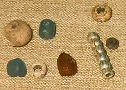 В памятниках палеолита археологи находят просверленные кости, зубы, раковины и другие вещи, вероятно служившие к изготовлению ожерелий у первобытного человека. Позже появляются различного рода камешки с правильно округлённым отверстием, алебастр, янтарь, жемчуг и пр.