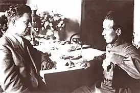 ![]() М.А. Шолохов и А.И. Бусыгин. 1930-е гг. | |