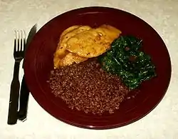 Бутанская кухня — система питания, в которой основными продуктами питания являются красный рис (похожий на коричневый рис по текстуре, но с ореховым вкусом; единственный сорт риса, который растёт на больших высотах), гречиха, и, всё чаще, кукуруза. В горах к основным продуктам добавляются также курятина, мясо яка, сушёные говядина и свинина, свиной и бараний жир.