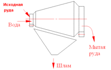 Состоит из загрузочной воронки, наклонного грохота, промывочного шлюза.