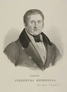 Фредерик Буххольц (нем. Friedrich Buchholtz; 16 мая 1792 г., Олштынек, Пруссия — 15 мая 1837 г., Варшава) — мастер по изготовлению роялей и органов. После окончания обучения мастерству создания роялей в Вене Буххольц переехал в Варшаву и в 1815 г. открыл фабрику роялей на ул. Мазовецкой[1]. Частым гостем арт-салона в его доме и фабричного магазина был композитор Фридерик Шопен[2], который приобрел для себя один из роялей Буххольца. Говорили, что каждый раз, когда Шопена приходили слушать более двух гостей, компания перемещалась в мастерскую Буххольца.