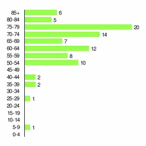 | Жителей | 708 | 764 | 721 | 567 | 272 | 200 | 177 | 134 | 88 |