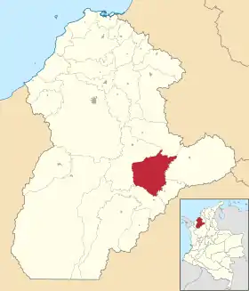 Город расположен в восточной части департамента, в пределах Прикарибской низменности, на расстоянии приблизительно 70 километров к юго-востоку от города Монтерии, административного центра департамента. Абсолютная высота — 66 метров над уровнем моря[2].