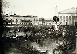 Буэнос-Айрес был открыт для иммиграции. Тысячи европейцев, главным образом из Италии и Испании, изменили внешний облик города и его достопримечательности. В городе проходило активное строительство, новые дома и дворцы были построены в итальянском стиле, вместо господствующего тогда «колониального стиля». Также появилась первая железная дорога в Аргентине, которая связала город с пригородом Флорес[36]. В 1871 году значительную часть населения города уничтожила эпидемия жёлтой лихорадки[37]. В 1875 году был основан парк Трес-де-Фебре́ро — Парк имени 3-го Февраля[38].