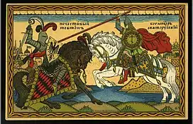 Стал конём топтать, копьём колоть,
