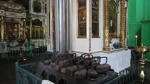 Церковь сохранила дореволюционное внутреннее убранство и знаменитые иконы невьянской школы, сделанные в XVIII веке в старообрядческой среде, сочетавшей древнерусские традиции XVI–XVII веков в живописи. На красочных и праздничных иконах изображены реальные уральские пейзажи, виды горнозаводских строений, многофигурные композиции с динамичными позами святых[2].