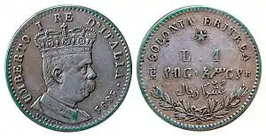 С 1938 года в дополнение к эритрейскому талеру (его чеканка прекращена в 1941 году) была выпущена лира Итальянской Восточной Африки[11][12][13][14][15].