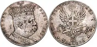 Соседняя Эритрея с 1557 по 1865 год была частью Османской империи, с 1865-го находилась под властью Египта, а с 1885 по 1890 год перешла под контроль Италии, окончательно став её колонией 1 января 1890 года. С 1885 года итальянские власти выпускали банкноты, номиналы которых были указаны в лирах. В 1890 году в Риме и Милане для новой колонии были отчеканены эритрейские талеры (таллеро) — монеты близкие по содержанию серебра талерам Марии Терезии и призванные вытеснить последние из внутреннего обращения Эритреи. Их номинал был выражен в двух денежных единицах — лирах и талерах (талер равнялся 5 итальянским лирам).