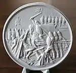 1955 год — Медаль юбилейная «Ленинграду 250 лет». Фарфор. Рельеф. ЛФЗ. (Рекомендована к массовому производству с доработкой. Худ. совет 1955 г.).