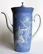 - Кофейник "Руслан, побеждающий Черномора" по сказке А.С.Пушкина "Руслан и Людмила". Форма "Ярославна". Фарфор. ЛФЗ.