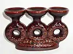 - (?) Сервиз чайный «Дачный-Сланец». Майолика. В коричневой поливе. Красно-кирпичный с кобальтовым ангобом — фризовый рисунок. Зелёный с кобальтовым ангобом и с рельефом в зелёной поливе (1965 г.). (?)