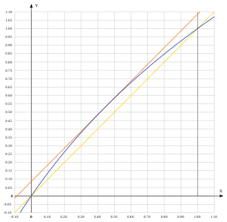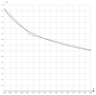Можно вычислить, чему равняется первое кусочно-линейное приближение[9] (в источнике используется не сама мантисса, а её явная часть ):