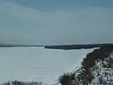 Вид с моста через Амурскую протоку: слева село Бычиха, справа китайский вантовый мост на Большой Уссурийский остров и китайский пограничный посёлок.