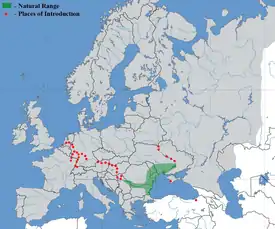 Ареал вида охватывает лиманы северо-западной части Чёрного моря, побережья Болгарии, а именно в прибрежных озёрах Мандренском, Бургасском, Варненском, Белославском[6]. В Дунае естественный ареал этого вида достигает Видин, является обычным видом в озёрах дельты Дуная. Обитает в реках Днестр до Каменец-Подольского, также в реке Збруч и Быстрица, Южный Буг выше порогов; в Днепре до Днепропетровска.