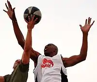 ![]() Бэйли играет в баскетбол с морской пехотой США во время своего визита в Ирак в 2007 году | |||||||||||||||||||||||||