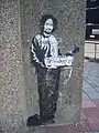 Граффити «Автостопом куда угодно» (Hitchhiker to Anywhere, 2005, Арчуэй, Лондон) (Чарльз Мэнсон в тюремной одежде).