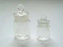 Бюкс (от нем. Büchse — банка) или весовой стаканчик — вид лабораторной посуды[1], баночка с притёртой пробкой. Используется как ёмкость при исследованиях, связанных с высушиванием и взвешиванием сыпучих материалов. Конструкция бюкса позволяет произвести точное взвешивание, избежав изменения веса гигроскопичного вещества из-за абсорбции воды. При высокоточных исследованиях обычно используются стеклянные бюксы. Изготавливают также бюксы из алюминия, пластика и керамики.