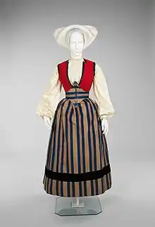 Мужчины в качестве головных уборов использовали тюбетейки, вязаные колпаки, валяные или фетровые шляпы с округлым верхом и широкими полями, а по праздникам — цилиндры. Женщины носили на голове косынки, чепцы и вязаные или тканые шапочки-повойники. На свадьбе невесты носили венцы (норв. brudekronen), изготавливавшиеся из золота, серебра, а у бедняков — из соломы. Он украшался цветами, лентами и подвесками, звон которых, издаваемый при движении, по поверьям, отгонял злых духов.