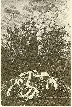 Бюст Александра III располагался на невысоком гранитном пьедестале с надписью «Царю-миротворцу сиротский приют имени Императора Александра III Юго-Западной железной дороги. 1909 г.».
