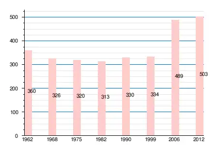 | 1962 | 1968 | 1975 | 1982 | 1990 | 1999 | 2004 | 2006 | 2009 | 2011 | 2012 |