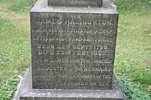 Джеймс Бёртон похоронен на кладбище Дин в Эдинбурге. На его надгробии выгравирована эпитафия: «ревностный исследователь геологии и древностей Египта»[11].