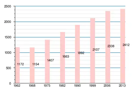 Население коммуны в 2011 году составляло 2428 человек[6], в 2012 году — 2420 человек[7], а в 2013-м — 2412 человек[5].