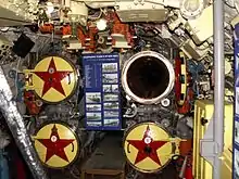 - Боевая рубка: посты управления перископами, рулевого-вертикальщика и боевой пост управления торпедной стрельбой.