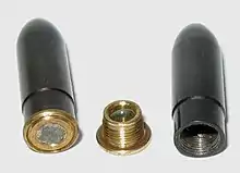 ![]() Два безгильзовых патрона Герасименко, у одного вывинчена капсюльная втулка |