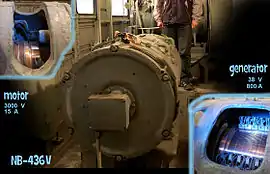 Преобразователь (возбудитель) секции ВЛ10к (на заднем плане — мотор вентилятор расположенный поперёк оси секции)