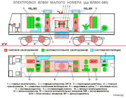 По компоновке оборудования ВЛ80Р практически не отличается от ВЛ80Т/ВЛ80С, за следующими отличиями: