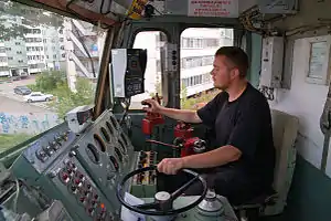- контроллер машиниста вместо главной рукоятки имеет штурвал.