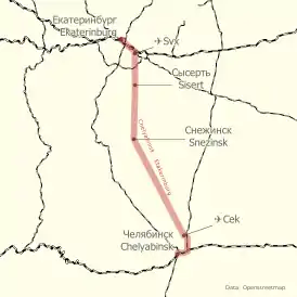 ![]() Схема предполагаемой трассы ВСМ Челябинск-Екатеринбург (2020) | |