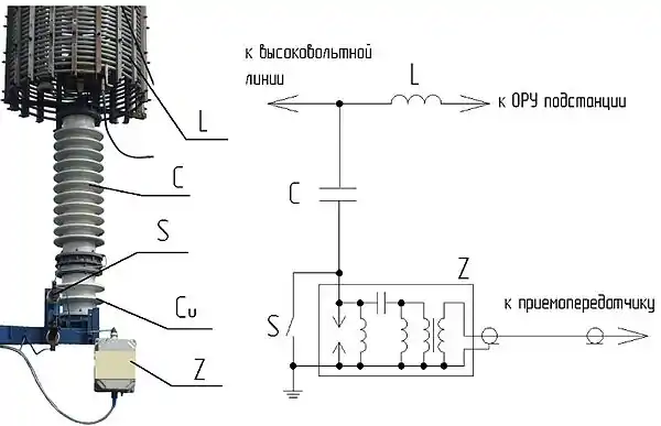 К устройству присоединения также относится высокочастотный заградитель, снижающий шунтирующее действие оборудования подстанции для ВЧ сигнала.
