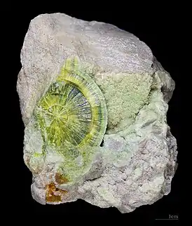 Вавеллит (также фишерит) — минерал, водосодержащий фосфат алюминия, близкий к бирюзе, варисциту и т. п. минералам. Названия — от фамилий Вильяма Вавелла и Г. И. Фишера. Также известен как лазионит, цефаровичит, гарбортит.