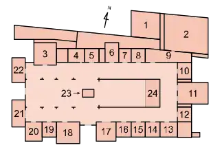 ![]() Главные ворота между часовней Святого Креста (справа) и часовней Святой Троицы (слева) |